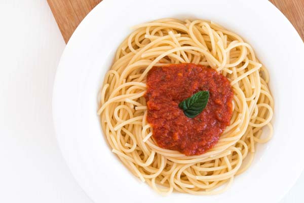 Die Nudeln weichkochen. Die Möhren schälen und in Würfel schneiden. Tomate in eine Schüssel geben, mit kochendem Wasser übergießen und kurz ziehen lassen. Tomate herausnehmen und in Eiswasser legen. Anschließend die Tomate schälen, Kerne und Stielansatz entfernen und dann in Würfel schneiden. Das Hackfleisch in etwas Wasser garen. Tomaten- und Möhrenwürfel für etwa 15 bis 20 Minuten dünsten. Anschließend mit etwas Kochwasser, dem Öl und dem Hackfleisch pürieren und die Nudeln untermischen.