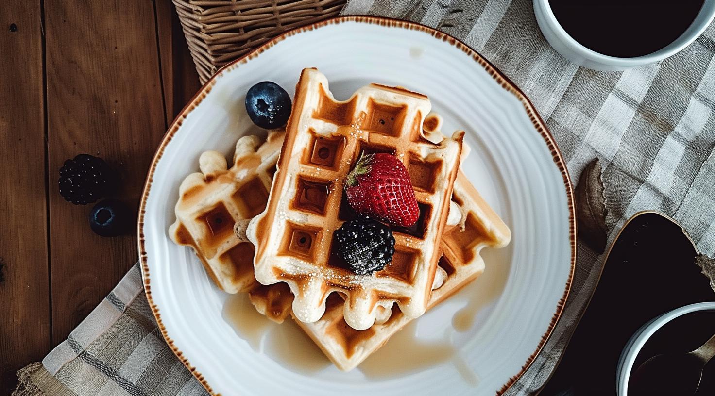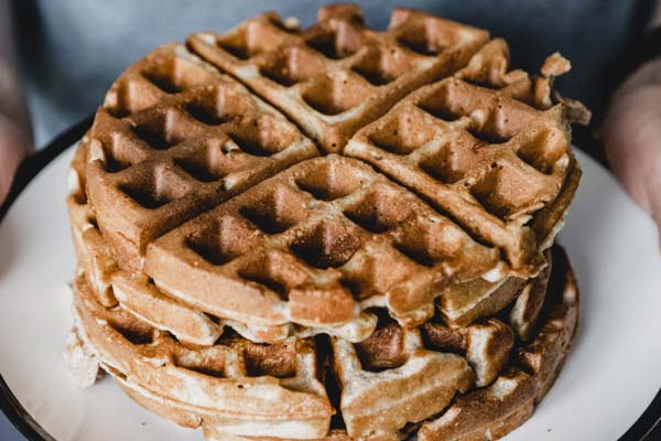Zutaten zu einem Waffelteig vermengen und anschließend im Waffeleisen ausbacken.